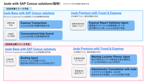 また、「Joule Premium with Travel & Expense」の名称で提供する新サービスとして、2026年春には、画面操作で行っていた経費精算レポートの抜け漏れチェックをJouleとの対話で完結する経費申請内容検証エージェント「Expense Report Validation Agent」をリリースします。