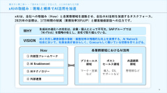 そして、3つめが「xAI(カケアイ)」です。現場の社員の自発的な取り組みによってスタートしたもので、単にAIを導入するだけでなく、業務改革や提供価値の向上にどんな貢献ができるのかといったことを、勉強会や合宿を通じて、部門を越えた学びと実践につなげ、AIを使える力として根づかせています。