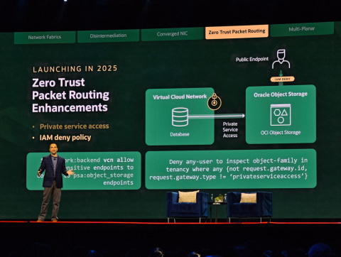 なお、三澤社長によれば、今回のOCIの発表の中でイチオシなのは、Oracle Acceleronの新機能として説明された「Zero Trust Packet Routing」の機能拡張だという。クラウドベースのネットワーク内部に侵入されても、その侵入されたルートを、ネットワークコントローラーなどハードウェアの機能を利用して切り離すことで、侵入の規模を拡大させないという機能だ。
