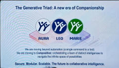 こうしたバーチャルコンパニオンが3つに分かれている理由について「それぞれ得意分野があるからだ。AURAは一般的な作業に適しており、LEOはエンジニアでありビルダーで、MARIEは科学者でありリサーチャーだ。AURAはコンテキスト(文脈)を理解して答えを出し、LEOはモデルを構築してくれ、MARIEは科学的な問題に答えを出してくれる」と述べ、それぞれの得意分野があるため、3つのバーチャルコンパニオンに分かれているのだと説明した。