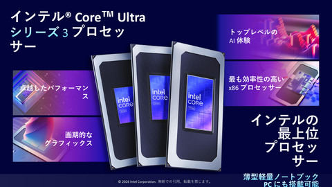 Intel:Core Ultra シリーズ3でAI機能と電力削減を強化