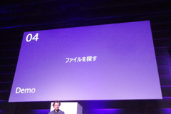 基調講演でもデモされた、改良されたWindows検索の例だ。ここでは、「青い背景のスライド」という指示で、ファイルの内容を基に検索した。