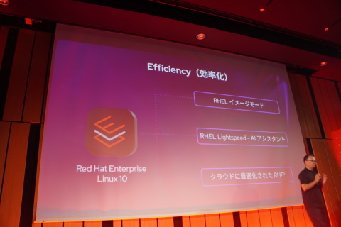 加えて、OpenShiftへのAI機能の組み込み、つまりOpenShift Lightspeedの充実もライト氏は挙げた。「顧客がAIによってRed Hatの専門知識にアクセスできるように、引き続き投資していきます」(ライト氏)。