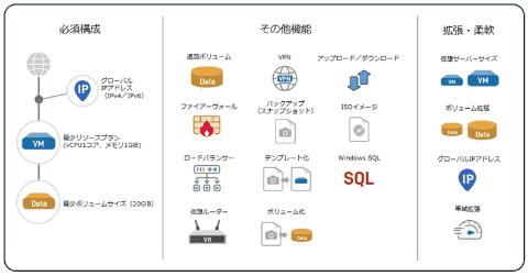 サービスの提供料金(税込・720時間換算)は、仮想サーバーが最小サイズの1vCPU・メモリ1GiBの場合で月額1650円、最大サイズの32vCPU・メモリ256GiBの場合で月額20万641円。ボリュームは、Standardの最小サイズが20GiBで月額770円、最大サイズが4000GiBで月額15万4028円。Largeの最小サイズが100GiBで月額2200円、最大サイズが1万2000GiBで月額26万4021円。グローバルIPアドレスは、IPv4が月額418円、IPv6は無料。