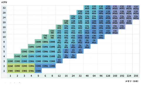 サービスのサーバープランは122種類あり、最大vCPUは32コア、最大メモリは256GiBのプランを提供する。料金体系は、サーバーリソースは1時間単位の従量課金となる。