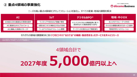 NTTドコモビジネス、AIなど重点4領域で2027年度に5000億円以上の収益目指す