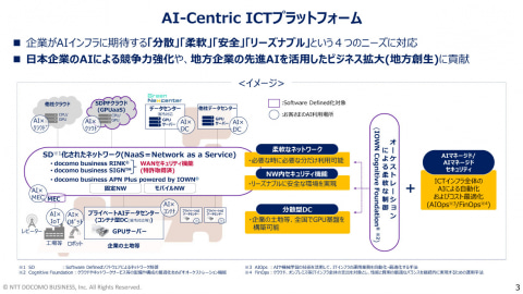 業界別ソリューション、地域・中小企業のDXソリューションのインフラとしてNaaS(Network as a Service)などを活用したAI-Centric ICTプラットフォームを提供していく。