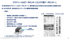 NTTドコモビジネスでは、発熱を抑えた液冷方式対応データセンターを首都圏、関西圏で提供している。今後は、液冷対応のコンテナ型データセンターを都市部だけでなく地方にも設置し、各地のAI需要に対応していく計画だ。