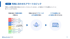 また、性格による回答の傾向を踏まえたロジックになっているため、性格に合わせてアラートが上がる基準が変化するなど、より適切にケアが必要なメンバーに気づけるほか、社員の性格に合わせて心理状態を解釈し、どのようにケアをすればよいかといったアドバイスも提供する。