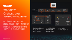 3つめのソリューションは、「Workflow Orchestrator」だ。ワークフローのオーケストレーション機能により、アプリケーションからインフラまでフルスタックで管理を自動化する。