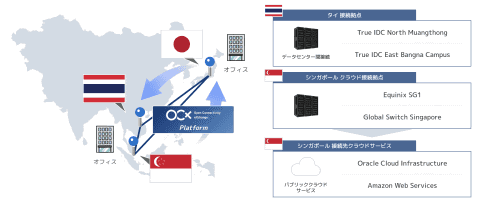 また、タイにおいては、True Internet Data Center(以下、True IDC)との協業契約に基づき、OCX接続拠点を開設する。BBIXとTrue IDCの合弁会社であるBBIX (Thailand) を通して、True IDCの高いセキュリティ基準を満たす信頼性のあるデータセンターとOCXのソフトウェアベースのアプローチを組み合わせることで、迅速かつ柔軟なネットワーク接続環境を提供し、タイの顧客のビジネスをサポートする。