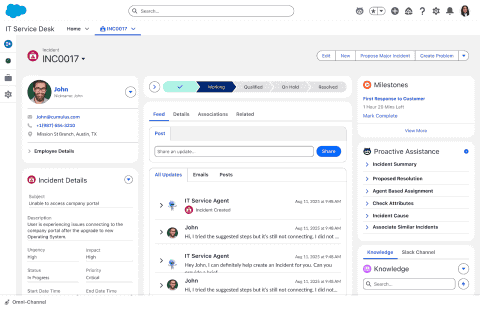 ITチーム向けには、Agentforce IT Serviceはインシデント管理を自動化し、迅速な問題解決を支える高度なインサイトを提供することで、ITチームの業務拡張を支援する。これにより、トラブルを未然に防ぐとともに、ITサポートコストを削減する。