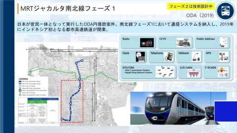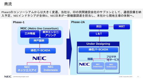 すでに2019年に開業したインドネシア初となる都市高速鉄道「MRTジャカルタ南北線」では、フェーズ1において、NECが、カメラや放送装置、監視システム、通信システムなどを納入。さらに北方向に延伸し、2028年の開業を目指すフェーズ2Aやフェーズ2Bのほか、フェーズ3となる「MRTジャカルタ東西線」の計画も進んでおり、NECはこれらにも関与していく意向を示す。