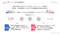 そこでさくらインターネットでは、祖業のサーバー提供を中心として、学習(開発)向けと推論(利用)向けにそれぞれサービスのカバー範囲を広げるという、クラウド型サービスによる高付加価値戦略に進んでいると須藤氏は説明した。今回の「さくらONE」は、前者の学習(開発)向けのサービスだ。