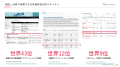 小西氏は、スーパーコンピューターの性能ランキングを競う「TOP500」において、さくらONEが世界49位の性能を発揮し、さらに分野ごとのベンチマークでもランキングに入ったことを紹介。次回のTOP500へのエントリーも準備中だと語った。