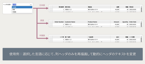 さらに、FlexGridで選択範囲内のセルを更新するrefreshRangeメソッドの機能を拡張し、ヘッダセルのみの再描画(更新)を可能にした。これまでは、行・列ヘッダを更新する際、グリッド全体を再描画するしかなく、パフォーマンスが低下していたが、選択した行・列ヘッダのみ更新できるようになったため、作業効率の向上が期待できる。