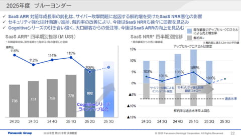 パナソニックホールディングスの和仁古グループCFOは、「SaaS NRRの数値を見ると、サイバー攻撃によるインシデントの影響が一部残っているが、発生以降、セキュリティ関連投資を含めてしっかりと対策が進んでいる。セキュリティ強化は計画通りに進捗している」と説明する。