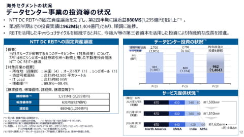 「第2四半期までのデータセンター譲渡益を除いても、売上高、EBITDAは前年同期比で順調に拡大している」と述べた。