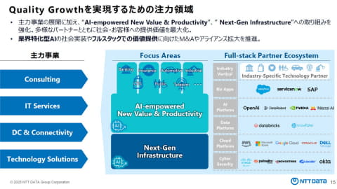 今回の決算説明会では、NTTデータグループが推進している「Quality Growth」への取り組みについても説明した。