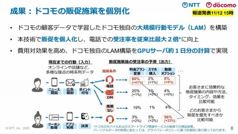 NTTとNTTドコモがAI技術の「大規模行動モデル」を確立、電話での受注率が最大2倍に