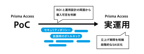 「Prisma Access PoCサービス」を活用すると、実運用に近い形で導入前の不確実性を解消できる点がメリット。PoCで得られるログや検証データをもとに、セキュリティポリシー適用や拡張時のボトルネックなどを具体化し、製品の操作性や運用イメージ、投資対効果(ROI)の観点から、導入可否を早期に判断可能になるという。さらに、PoCの結果を本番設計へ反映することにより、本番導入時の手戻りを防ぎ、スムーズな移行を実現できるとしている。