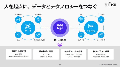 特に、AIを活用したHealthcare Transformationへの取り組みに注力しており、「医療分野における変革を推進する鍵はAIである」(富士通Japanの桑原事業本部長)と位置づける。