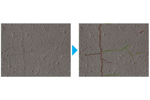 これらなどにより、検知可能な変状が従来の5種類から12種類に拡大し、点検対象の幅が大きく広がった。さらに、構造物を斜めから撮影した画像のゆがみを補正し、正面視点に変換する「正対補正」機能や、画像内の検知不要エリアを指定できる「非検知エリア設定」機能など、現場のニーズに即した実用的な機能を追加した。