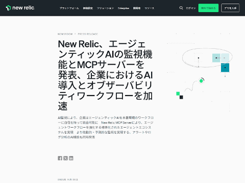 New Relic、エージェンティックAIの監視機能とMCPサーバーの提供を発表