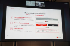「GPU-as-a-Service」として、アクセラレーターを効率的に使う仕組みが導入されている。まずマルチクラスタとマルチテナントでの利用を最適化する。