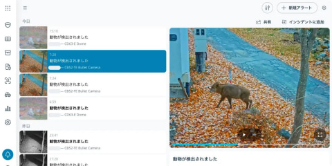 具体的には、動物の動きや任意のラインの横断などを自動検知し、Verkadaのスマートフォンアプリやメールなどで、ほぼリアルタイムでのアラート通知を行えるほか、赤外線LEDを使用したナイトモードにより、暗所での動物検知にも対応可能。過去の映像から動物検知イベントを検索することも可能なため、日中から夜間まで継続的に敷地状況を可視化できるとのこと。