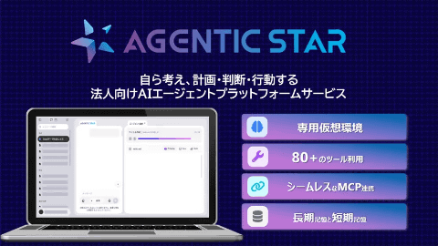 さらに、AGENTIC STARは、AIが既存システムと安全に連携するための公開仕様の一つであるMCP(Model Context Protocol)に対応している。これにより、社内システムや複数のAIエージェントとの統合が容易になり、業務プロセスの自動化や高度化を加速し、変化の激しいビジネス環境における持続的な競争優位の確立をサポートする。
