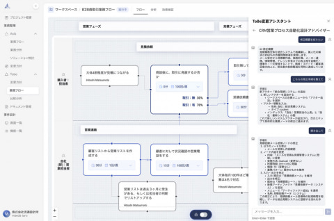 加えて、業務フロー、ユースケース、画面一覧、機能一覧など、要件定義に必要な基本設計書を自動作成することで、ドキュメント整備の工数を大幅に削減できる点も特徴。コスト削減効果や業務効率化などの定量指標を算出して、定性的な背景情報と組み合わせ、開発投資判断に必要な稟議資料も自動で作成する。