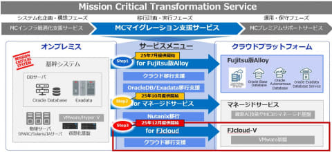 富士通株式会社は6日、ミッションクリティカルシステムのクラウド化を支援する「Mission Critical Transformation Service」について、「MCマイグレーション支援サービス」の移行対象としてVMwareを基盤とするクラウド「FUJITSU Hybrid IT Service FJcloud-V」を追加したと発表した。