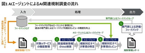 AI規制対応支援サービスは、インターネット上にある国内外の数百に及ぶAI規制、ガイドラインを対象に、企業がAI技術や関連サービスを提供する際に順守すべき法令などの規制を特定し、それらに対する具体的な対応策を提案する。