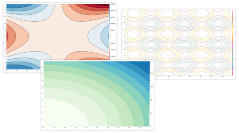 また、WinForms/WPF/WinUI/.NET MAUI/Blazorの各エディションでは、チャートコンポーネント「FlexChart」に2D等高線チャートが搭載された。地形図のように数値の高低を線や色で表現するグラフで、高低差を持つ三次元データを、色や線の変化によって二次元の平面上で直感的に把握できる。科学的な測定データやエンジニアリングシミュレーション、統計モデル、地理空間データなど、数値の分布や傾向を一目で理解したい場面で活用できるとのこと。