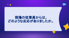 4つめの質問は「現場の従業員からは、どのような反応がありましたか」。これについて小泉氏は、一般に新しいものを導入すると「期待していたものと違う」というような反応がありがちだが、Slackbotについてはスムーズに使えていると回答した。