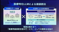 加えて、大阪堺データセンター上で実行するアプリケーションについて、KDDIの子会社でもあるMEIが手掛ける、電子カルテと医療特化LLMなどを組み合わせた「医療用垂直統合サービス」の提供を目指すことなどを紹介。こうした最先端のAIデータセンターを活用することで、これまでになかった新しいアプリケーションを日本企業が提供できるようになるとアピールした。
