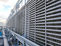 ターボ冷凍機で熱交換されて温水になった水は、再び屋上の冷却塔に戻され、熱を水蒸気として大気に放出することで、熱交換を行う仕組みになっている。つまり、DLCの水路(ターボ冷却器からCDUまで)とターボ冷却器を冷却する水路という2つの水路が別々に運営される形になっている。