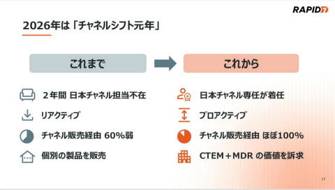 パートナー戦略については、ラピッドセブン・ジャパン APJ チャネルアカウントマネージャー 日本リージョン担当の平野健太郎氏が説明、「2026年はチャネルシフト元年だ」とした。