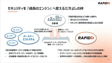 平野氏が理想として掲げるのは、顧客・パートナー・ラピッドセブンの三者が利益を得る「三方よし」の構図だ。パートナーの独自性を生かした差別化支援やイネーブルメントを強化し、パートナーの収益性向上と顧客の運用負荷軽減を同時に実現するエコシステムの構築を目指すという。