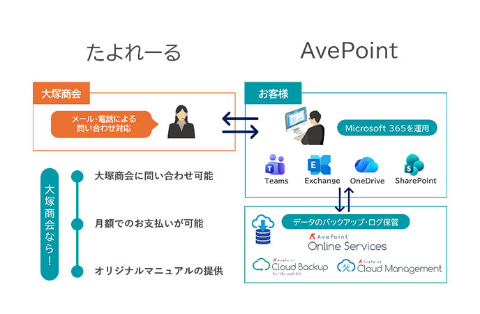 AvePointでは、Microsoft 365の運用管理の自動化、安全なデータ保護などを支援する機能を備えたSaaS型プラットフォームのAvePoint Online Servicesにより、こうした課題を抱えるMicrosoft 365の利用企業をサポートしてきたが、大塚商会は今回、このAvePoint Online Servicesと自社のサポートサービスを組み合わせ、「たよれーる」ブランドでの展開を開始する。