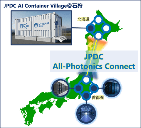 さらに、北海道石狩市に構築を進める「JPDC AI Container」と、首都圏等の主要データセンター群をJPDC All-Photonics Connectで直結する構想の実現を目指している。