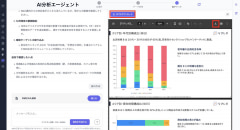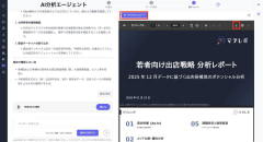 また、分析内容を用いてワンクリックで資料を作成し、PDFまたはPPTX形式でダウンロードする機能も備えた。