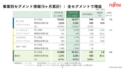 富士通、2025年度第3四半期の連結業績は増収増益 営業利益・当期純利益ともに過去最高益に