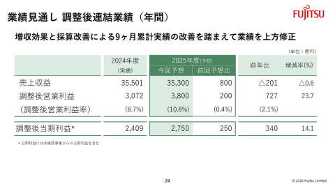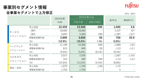 富士通では、2025年度通期(2025年4月~2026年3月)の業績見通しを上方修正した。
