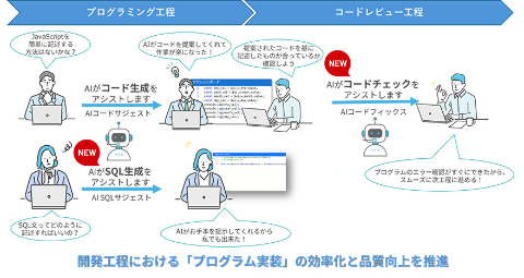 また、開発段階で不正な構文や文法ミスを生成AIが自動的に検出し、修正イメージを提案することで、早期修正を可能にする「AI コードフィックス」機能も搭載された。システムの動作不良の原因となるコードの構文エラーが減ることから、開発効率が高まり、コード品質の向上と障害発生リスクの低減を実現するとしている。