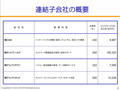 なお、連結子会社はOSK、ネットワールド、アルファテクノ、アルファネットの4社で変更はないが、「ネットワールドのボリュームが大変大きくなっている。売り上げで368億円のプラス、前年比で25.7%伸長となった。これは、本体のようにWindows 11への入れ替え特需ではない。シトリックス、クラウドストライクなど、セキュリティも含めたエンタープライズ企業向けデータセンター需要などが好調だったことに起因している」としたように、ネットワールドのビジネスが好調となった。