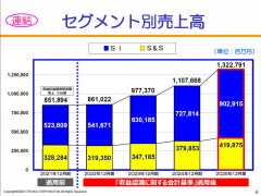 連結セグメント別売上高は、システムインテグレーション事業が前年比24.1%増の9029億1500万円、サービス&サポート事業が同10.5%増の4198億7500万円。