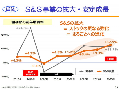 S&S事業の粗利は、全社販管費の7割をカバーしている。大塚社長はこれに満足せず、「ゆくゆくは販管費すべてをストックビジネスでまかなえるレベルまで拡大したい。実現には時間がかかると思うが、一歩ずつ目指していきたい」と話した。
