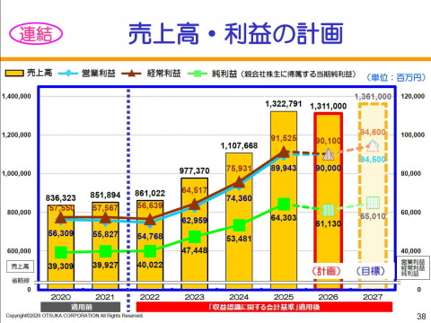 「前回の特需以降も順調に推移している。市場の環境も悪くない。山があって谷があるのは当たり前だが、過去を見ると、5ポイント超の成長を平均的にずっと出しているので、その巡航速度には最低限戻ろうと考えている。そして、2027年度には再び成長に戻していくことを計画したい」とした。